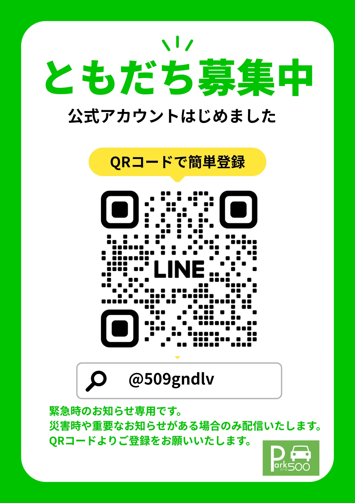 - パーク500内にEV充電の区画を設置しました。ご利用方法などの詳細はこちら